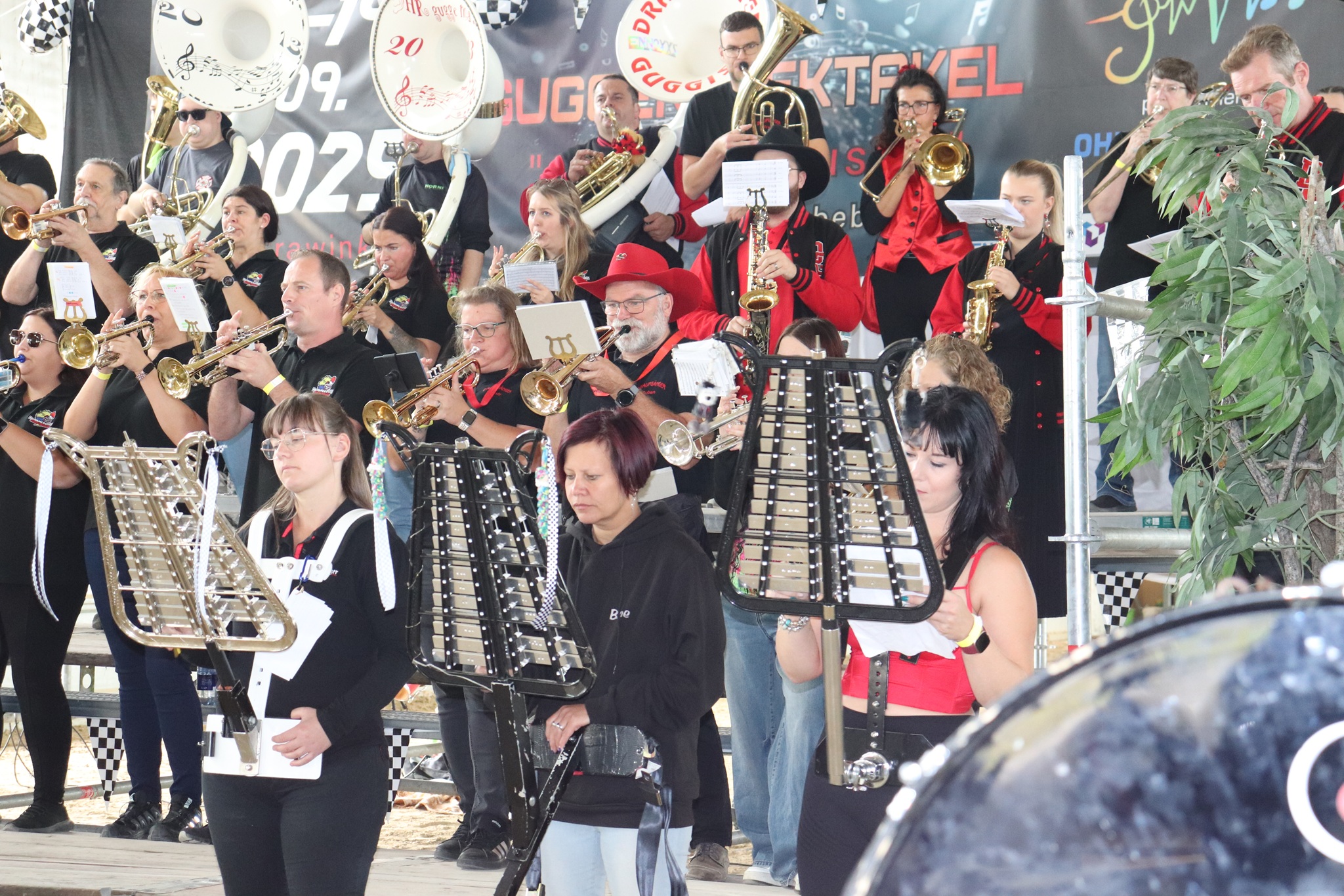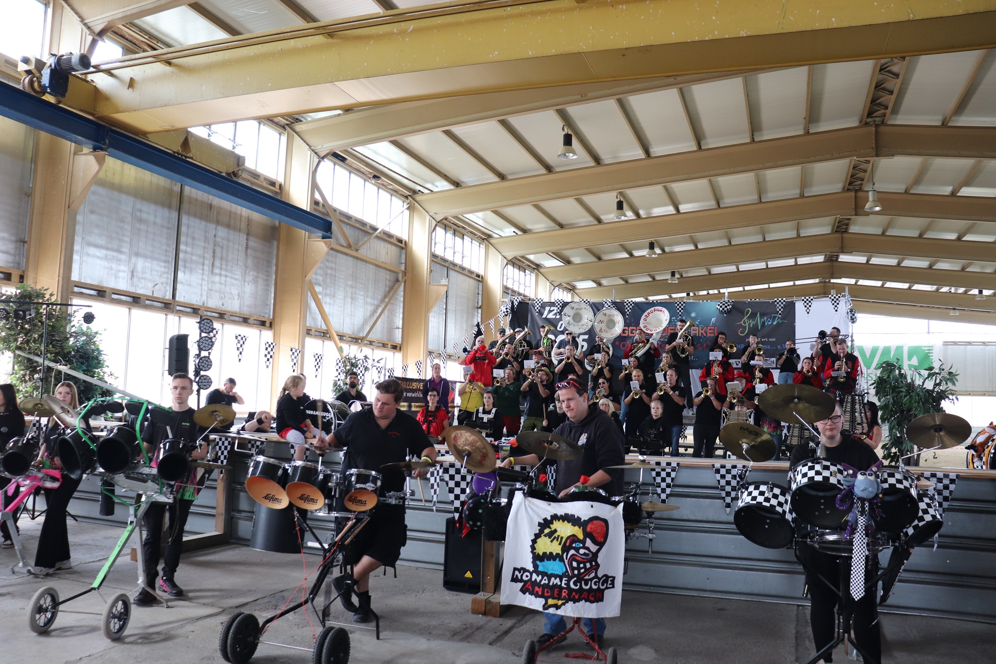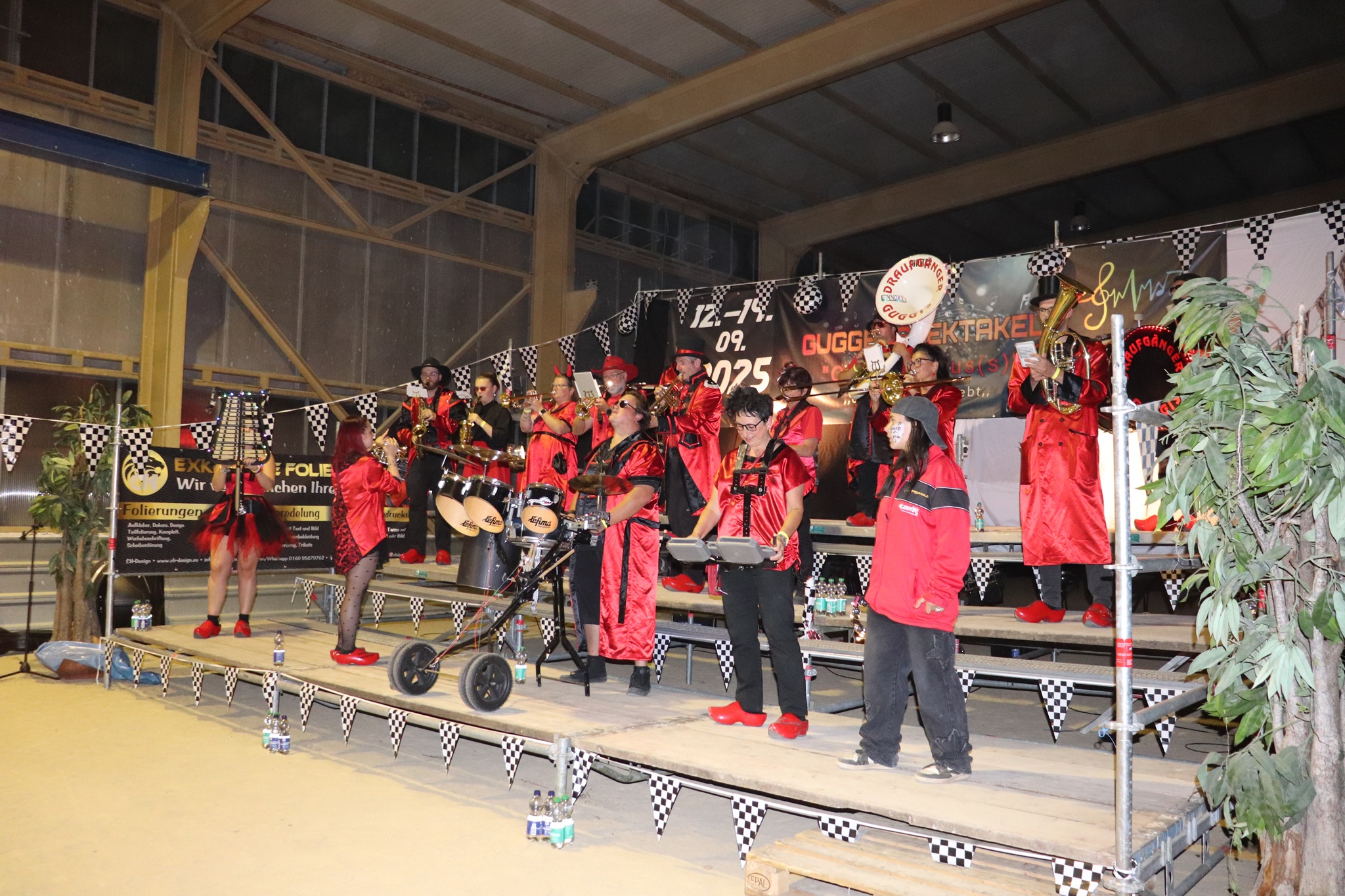 Am Nachmittag zogen wir als kleiner Festumzug zur Ortsmitte, bei dem alle Gugge-Vereine kurz spielten und für gute Stimmung sorgten. Danach ging es weiter mit Musik, Spaß und guter Laune. Höhepunkt war am Abend das große Monsterkonzert, bei dem alle Musikerinnen und Musiker gemeinsam spielten und die ganze Halle zum Beben brachten,