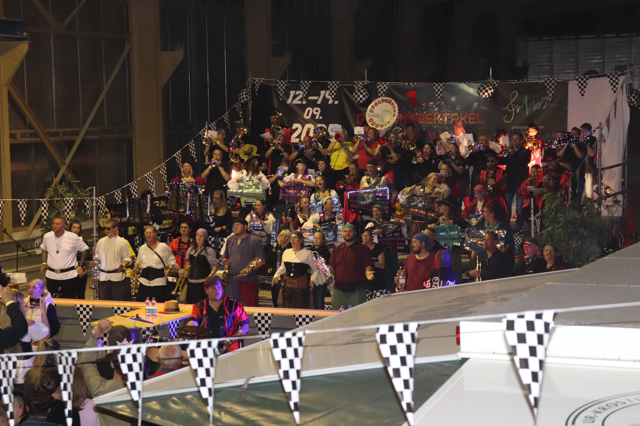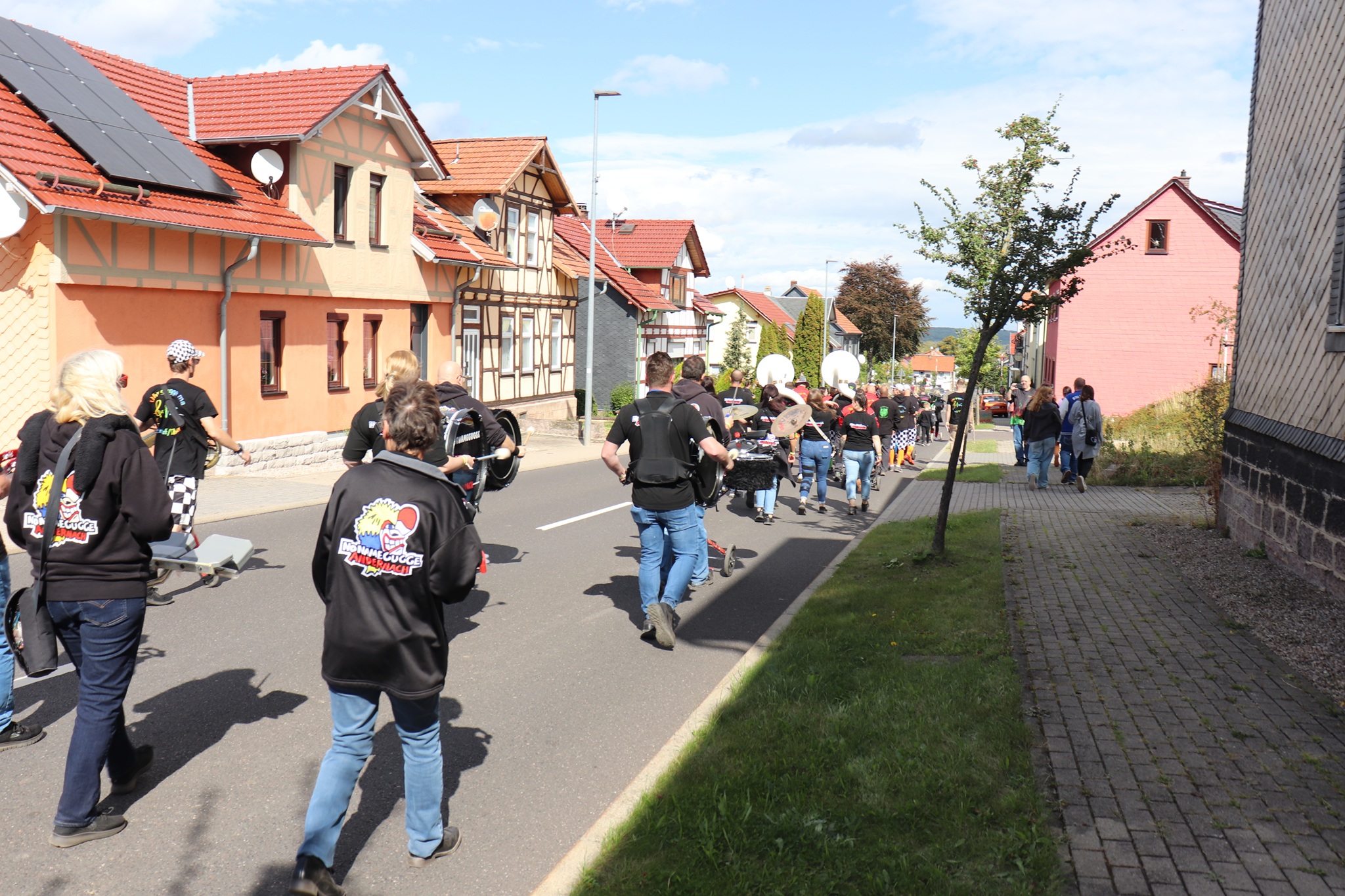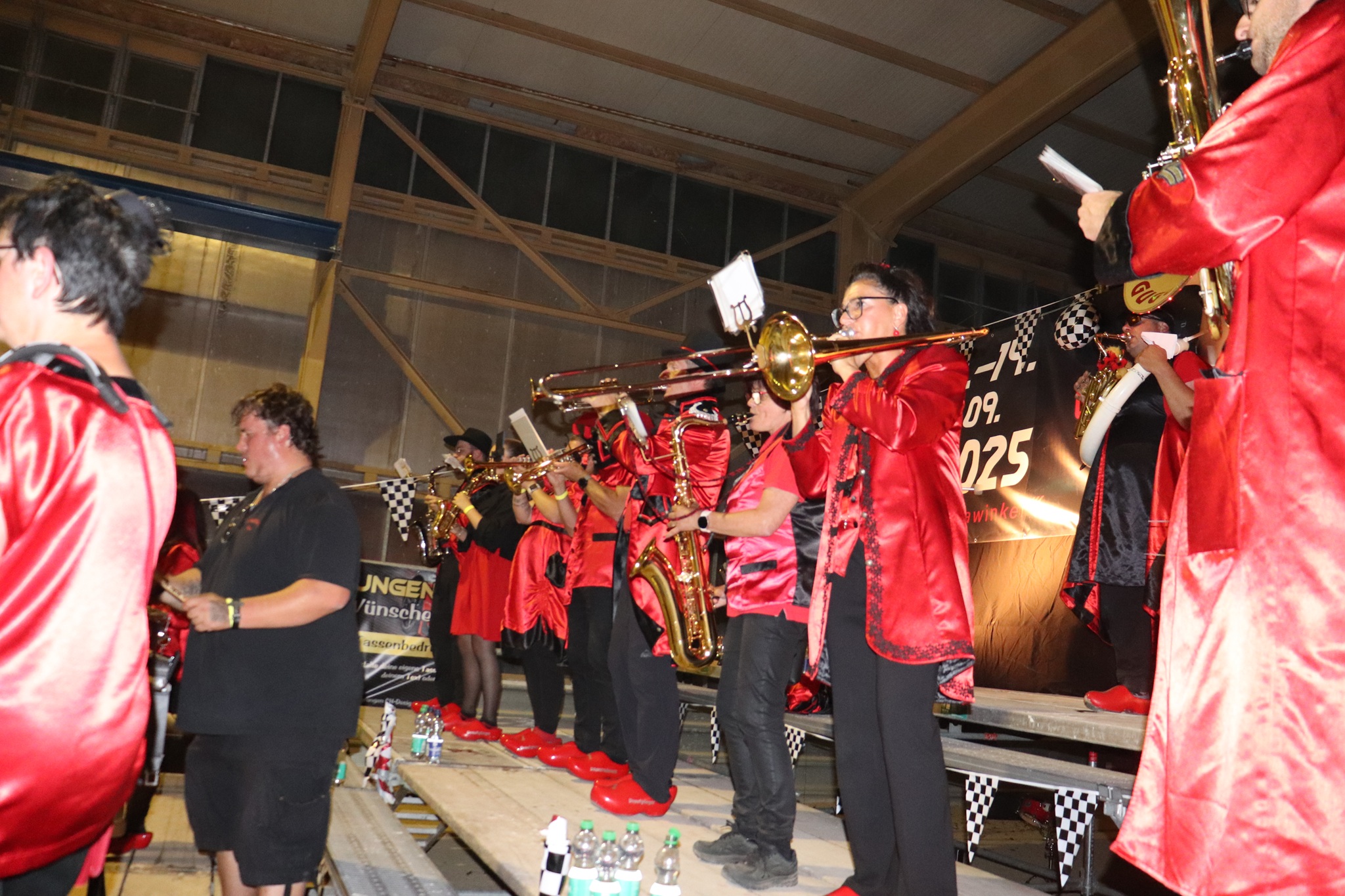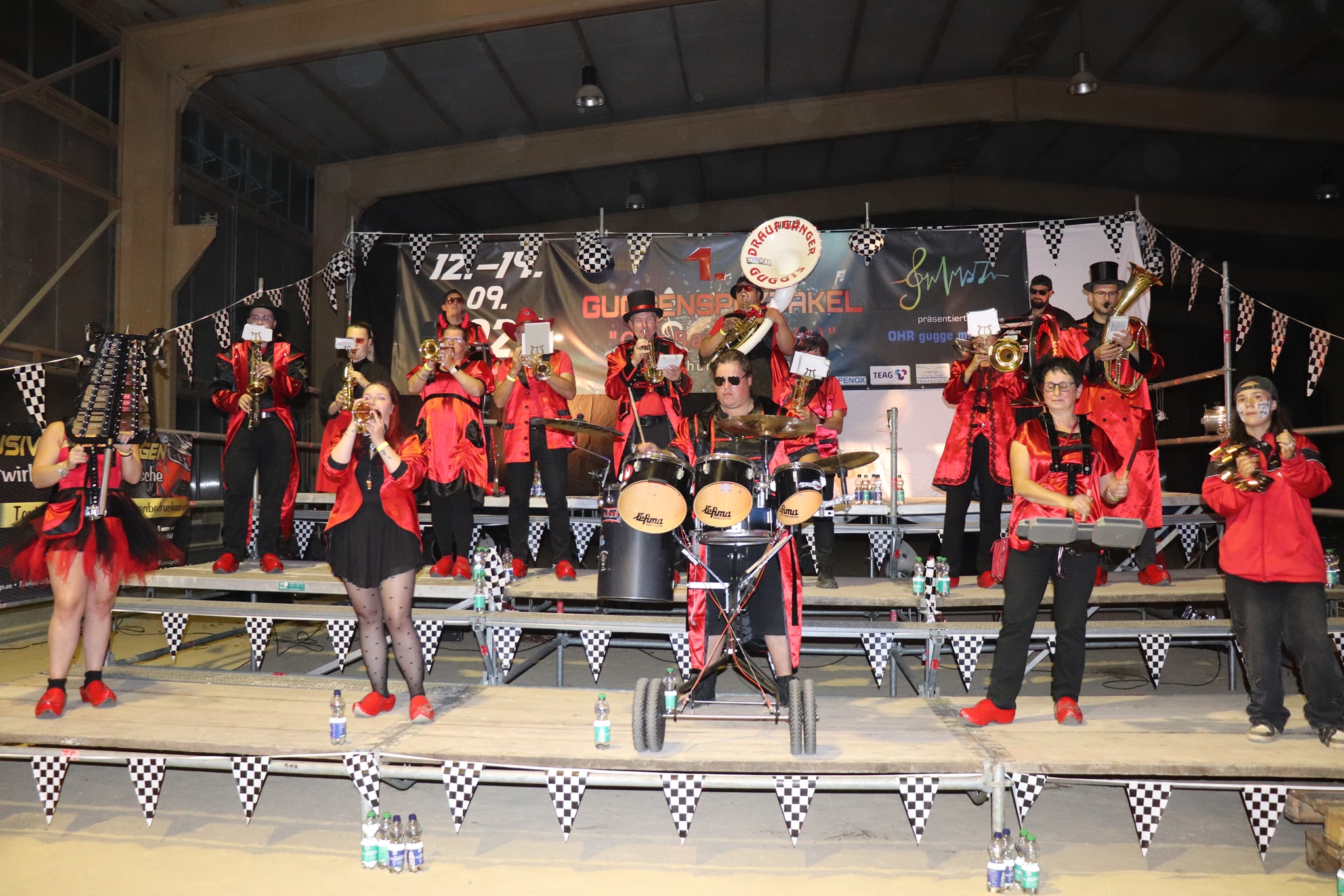 Am Nachmittag zogen wir als kleiner Festumzug zur Ortsmitte, bei dem alle Gugge-Vereine kurz spielten und für gute Stimmung sorgten. Danach ging es weiter mit Musik, Spaß und guter Laune. Höhepunkt war am Abend das große Monsterkonzert, bei dem alle Musikerinnen und Musiker gemeinsam spielten und die ganze Halle zum Beben brachten,