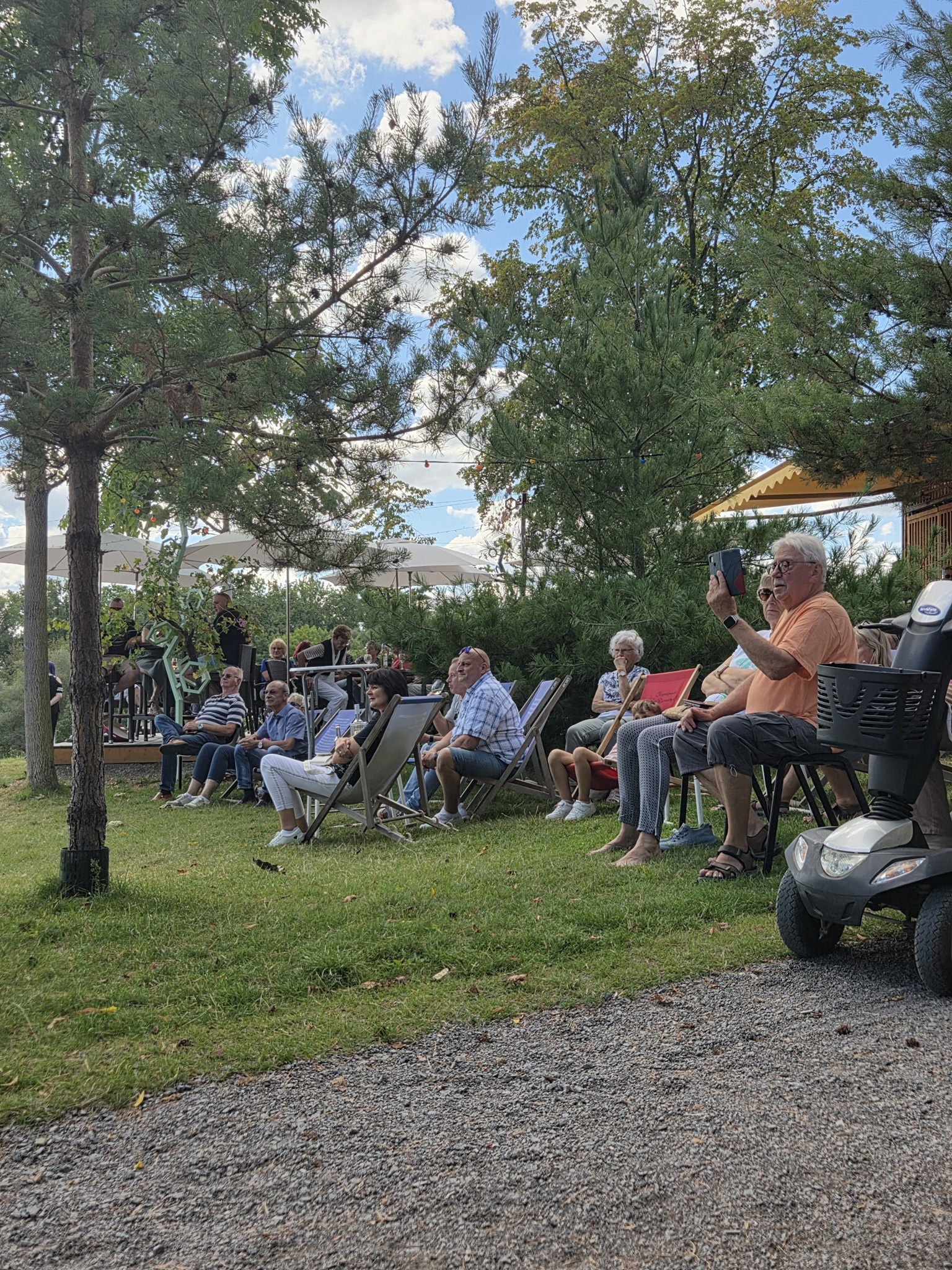 Im Kurpark Bad Dürrenberg haben wir in der Weinlaube gespielt und die Besucher mit unserer Musik unterhalten. Es war eine tolle Stimmung und wir hatten viel Spaß dabei.