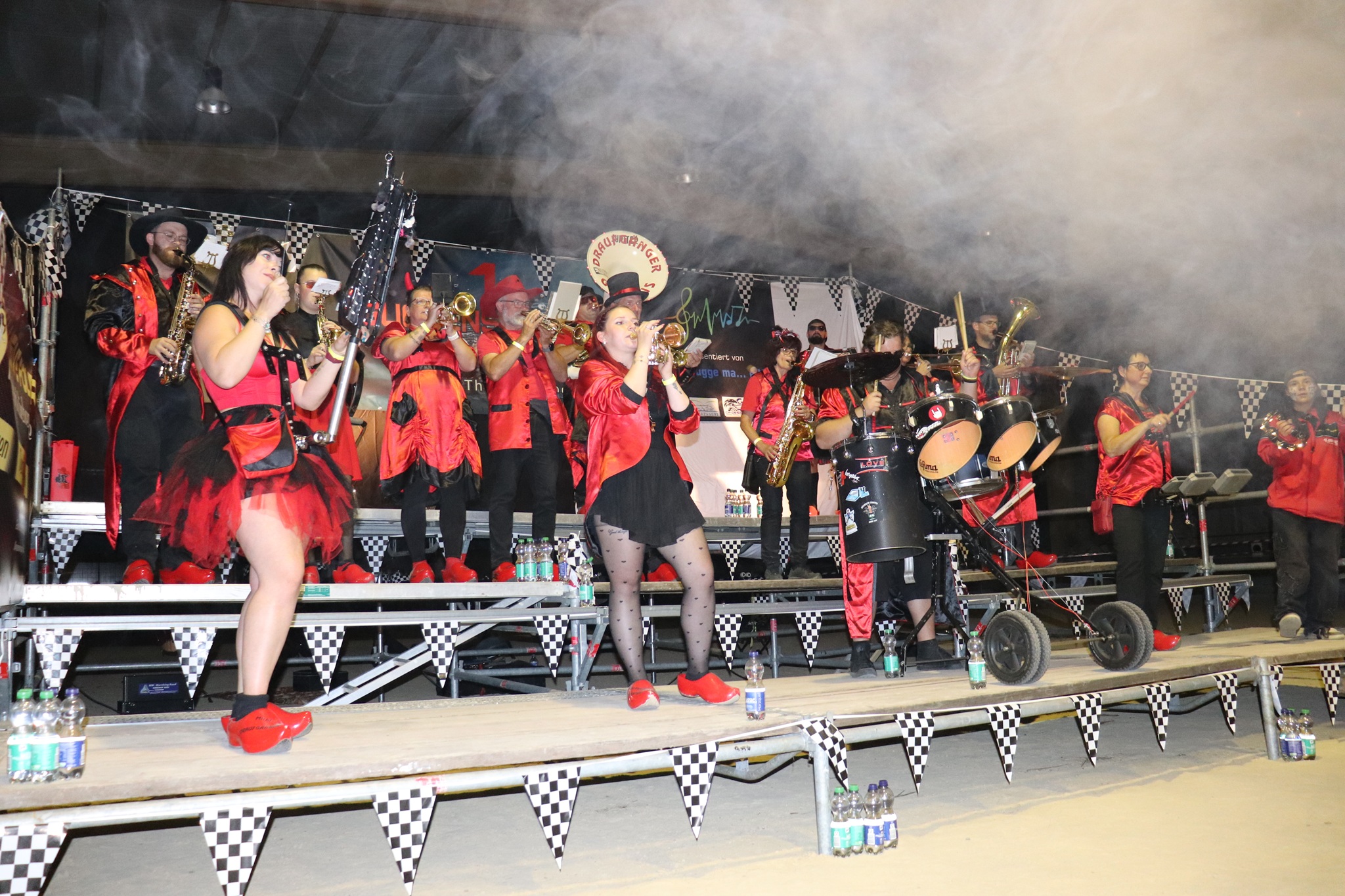 Am Nachmittag zogen wir als kleiner Festumzug zur Ortsmitte, bei dem alle Gugge-Vereine kurz spielten und für gute Stimmung sorgten. Danach ging es weiter mit Musik, Spaß und guter Laune. Höhepunkt war am Abend das große Monsterkonzert, bei dem alle Musikerinnen und Musiker gemeinsam spielten und die ganze Halle zum Beben brachten,